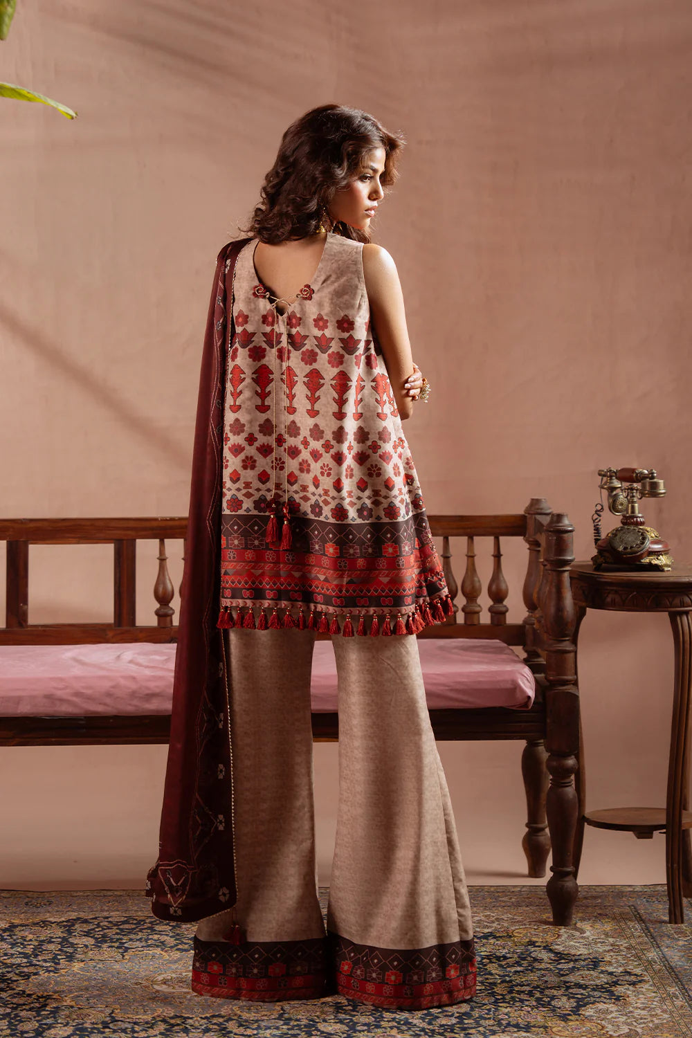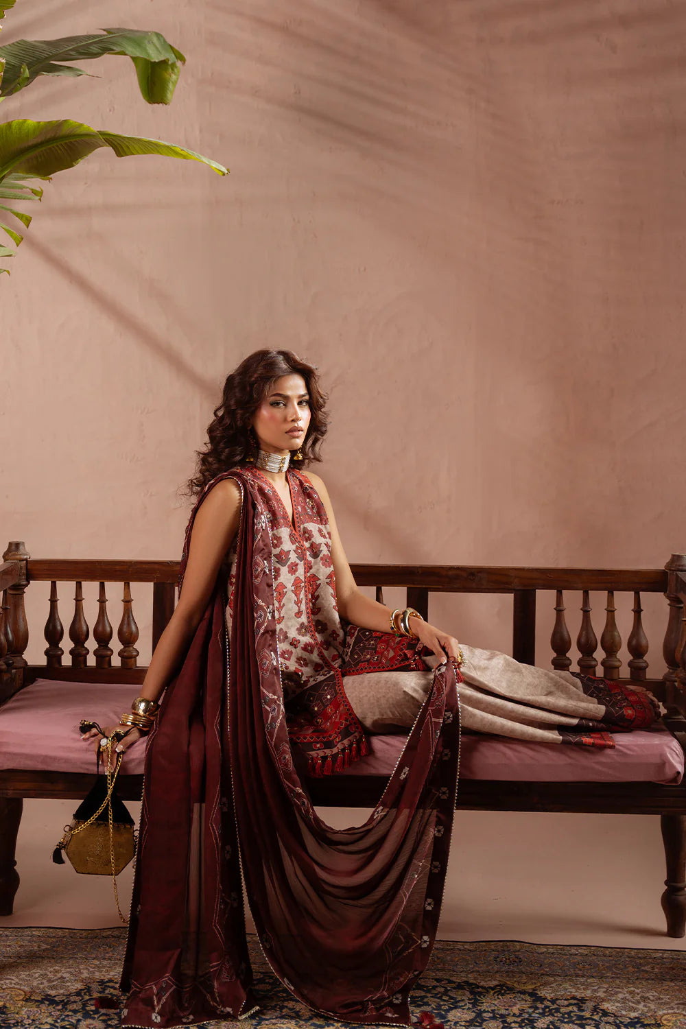 DESCRIPTION: This elegant ensemble is tailored from luxurious silk fabric, beautifully enhanced with embroidery and intricate resham detailing. A matching printed silk dupatta completes the look with effortless sophistication and grace.