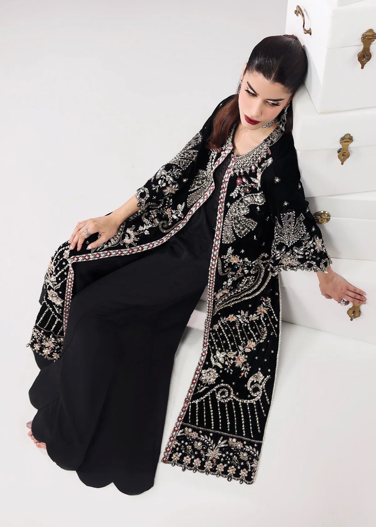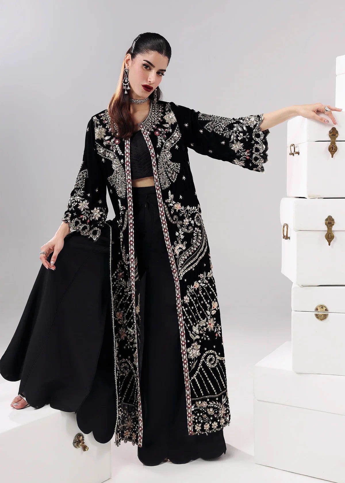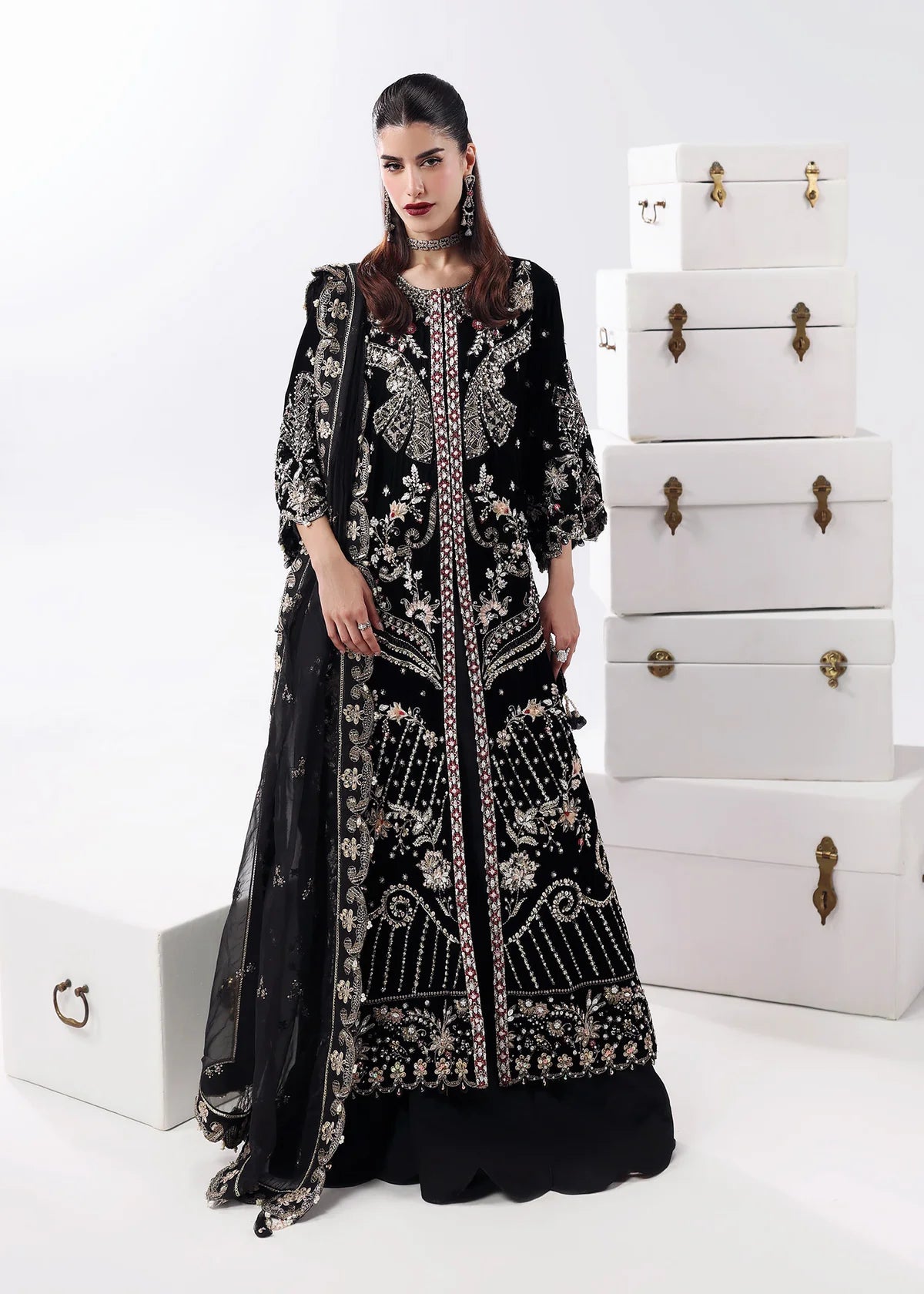 Shirt: Velvet Dupatta Organza Trouser: Raw silk