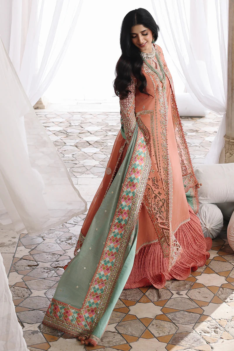 Embroidered Dupatta Four Sided Border on Charmeuse Silk