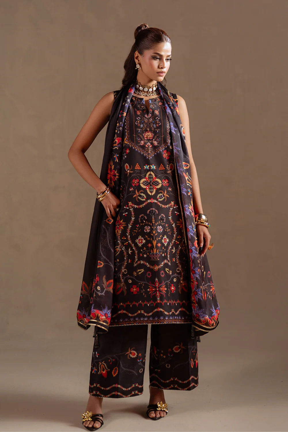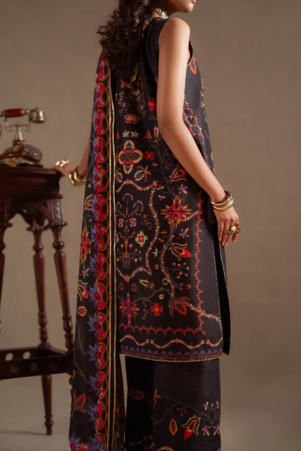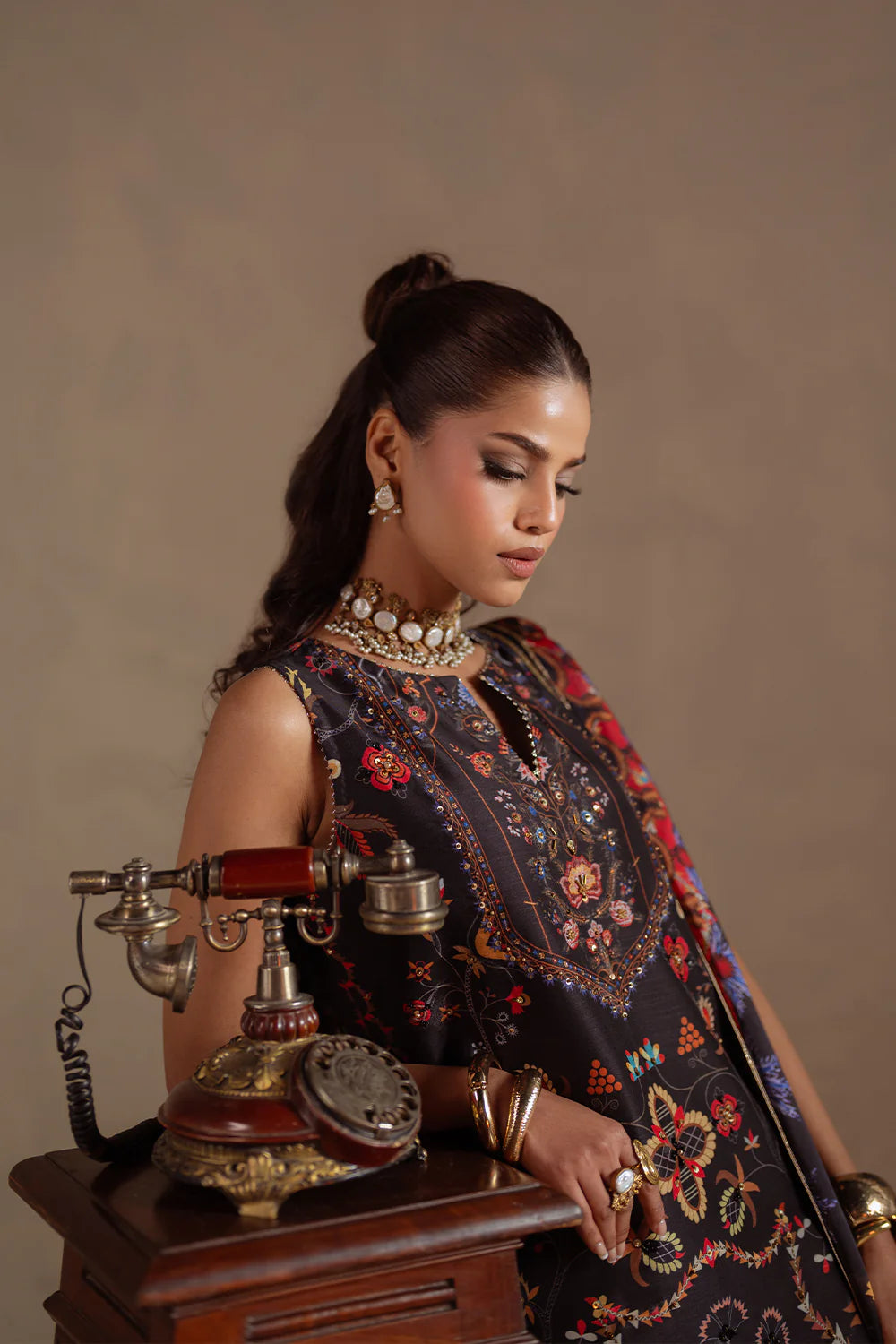 DESCRIPTION: This elegant ensemble is tailored from luxurious silk fabric, beautifully enhanced with embroidery and intricate resham detailing. A matching printed silk dupatta completes the look with effortless sophistication and grace.