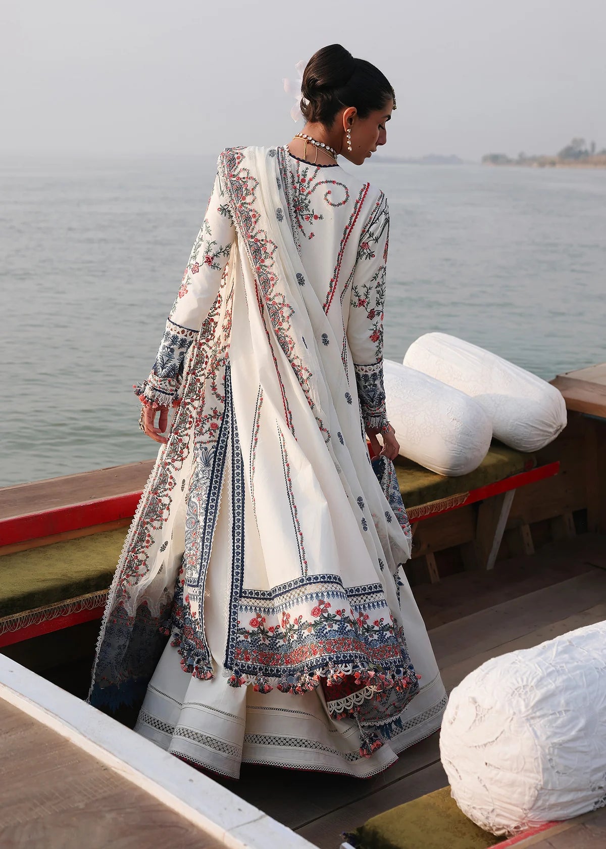 An exquisite aqua green luxury lawn ensemble designed to embody freshness, elegance, and refined craftsmanship. The shirt is beautifully adorned with intricate floral embroidery in soft pink and earthy tones, creating a delicate yet statement-making appeal. Enhanced with finely detailed borders and elegant accents, the design reflects timeless artistry with a modern touch. Paired with a gracefully embroidered matching dupatta, the flowing silhouette and premium lawn fabric ensure comfort without compromising on luxury. Ideal for festive wear, summer soirées, and daytime celebrations, this ensemble captures effortless sophistication and serene char